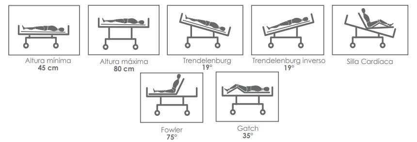 especialmente diseñada para cubrir los requerimientos de una UCI (Unidad de Cuidados Intensivos), contemplando todos los movimientos , funciones y accesorios para el tratamiento de los pacientes más vulnerables.
